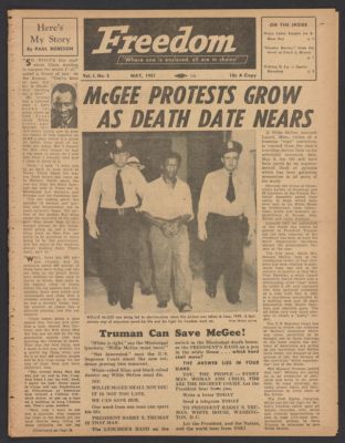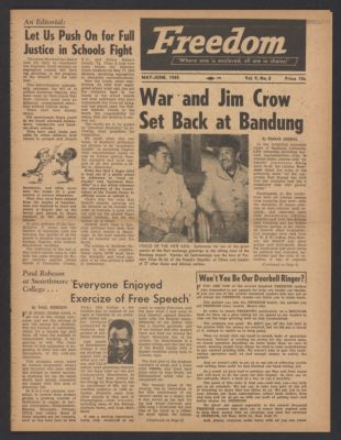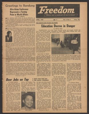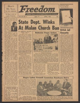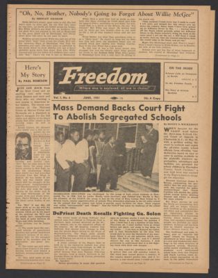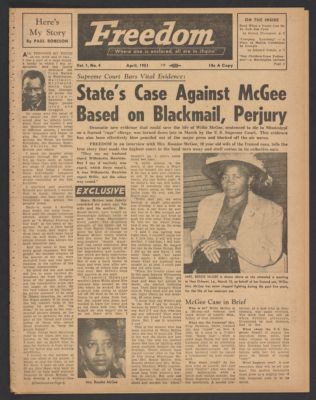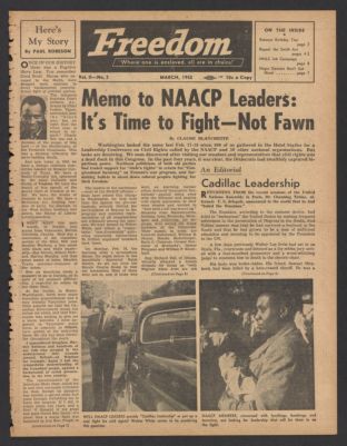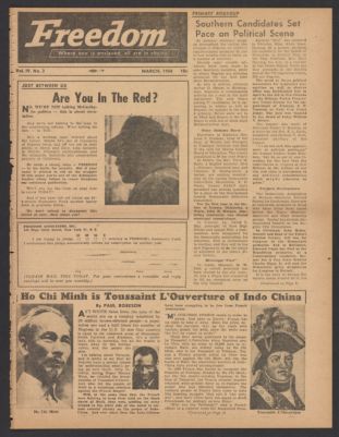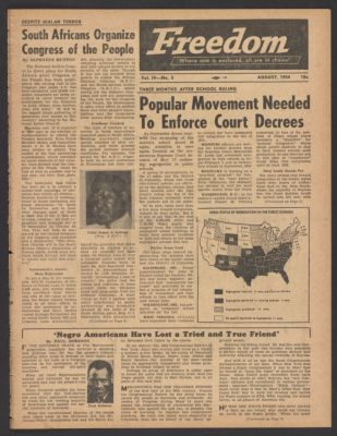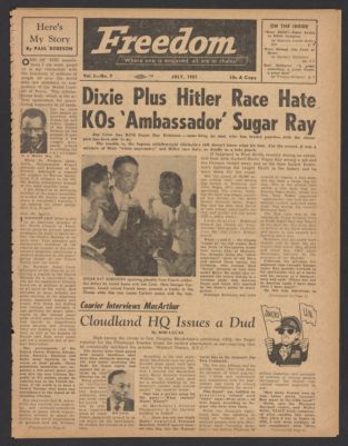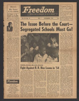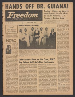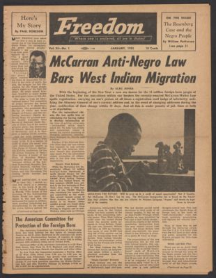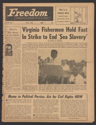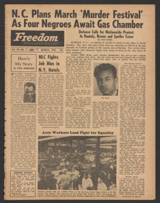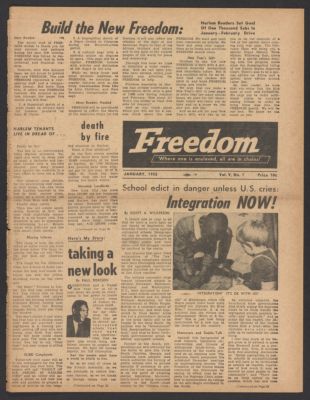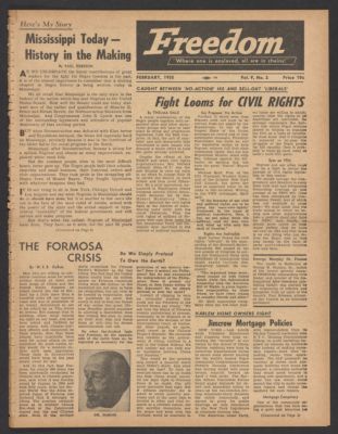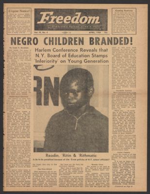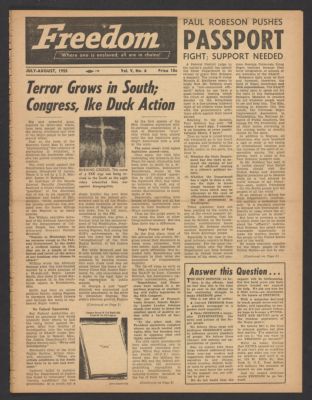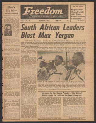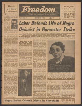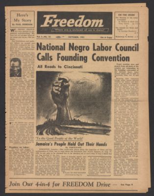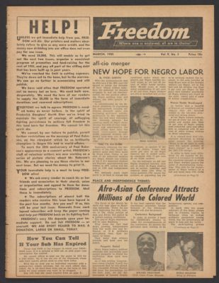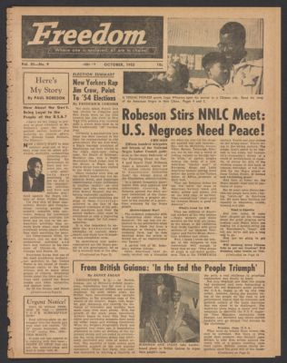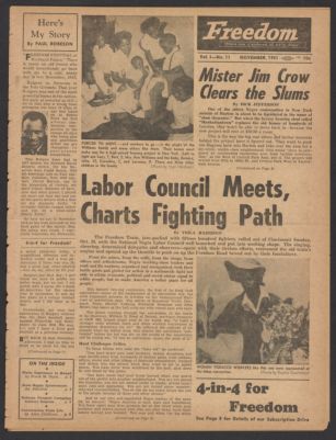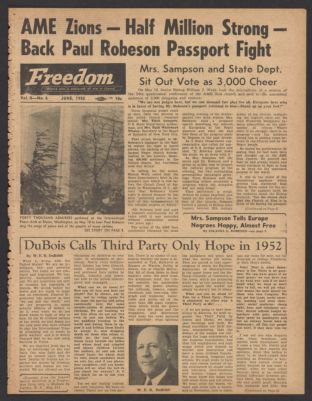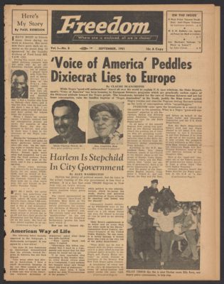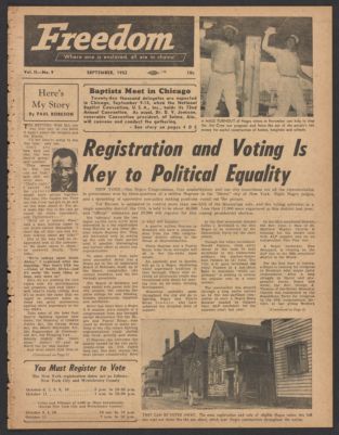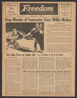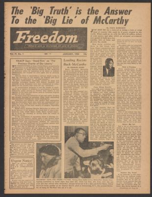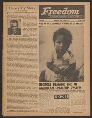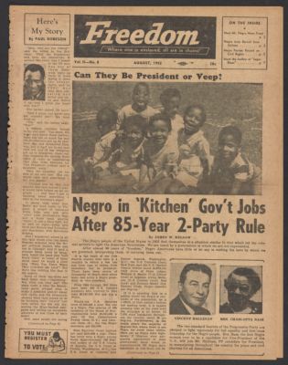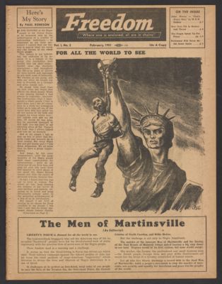 Freedom (1951-55) was a newspaper founded in Harlem, New York by activists Paul Robeson and Louis Burnham during the Cold War and McCarthy eras. It openly challenged racism, imperialism, colonialism, and political repression and advocated for civil rights, labor rights and world peace. Its writers and contributors included W.E.B. Du Bois, Alice Childress and Lorraine Hansberry. READ MOREā¦