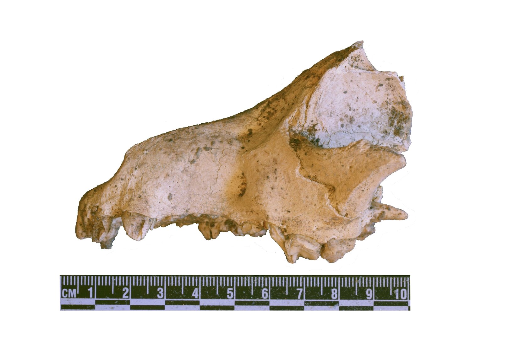 Not all the faunal remains recovered from ʿAin el-Gedida were the remains of meals. The remains of commensal species, including a dog, a cat, and rodents, were well represented in the faunal assemblage. A partial cat skeleton was recovered from room B10, and the remains of a dog were recovered in room B19. Two views of the dog’s skull are shown in Plate 12.1. The dog skeleton included a complete radius with a greatest length (GL) of 160.5 mm. This radius came from a dog with a withers height of about 51.7 cm (using Koudelka’s factors following von den Driesch and Boessneck 1974). Although the ʿAin el-Gedida assemblage produced a substantial number of donkey bones, there is no clear butchery evidence to suggest that they were part of the diet.