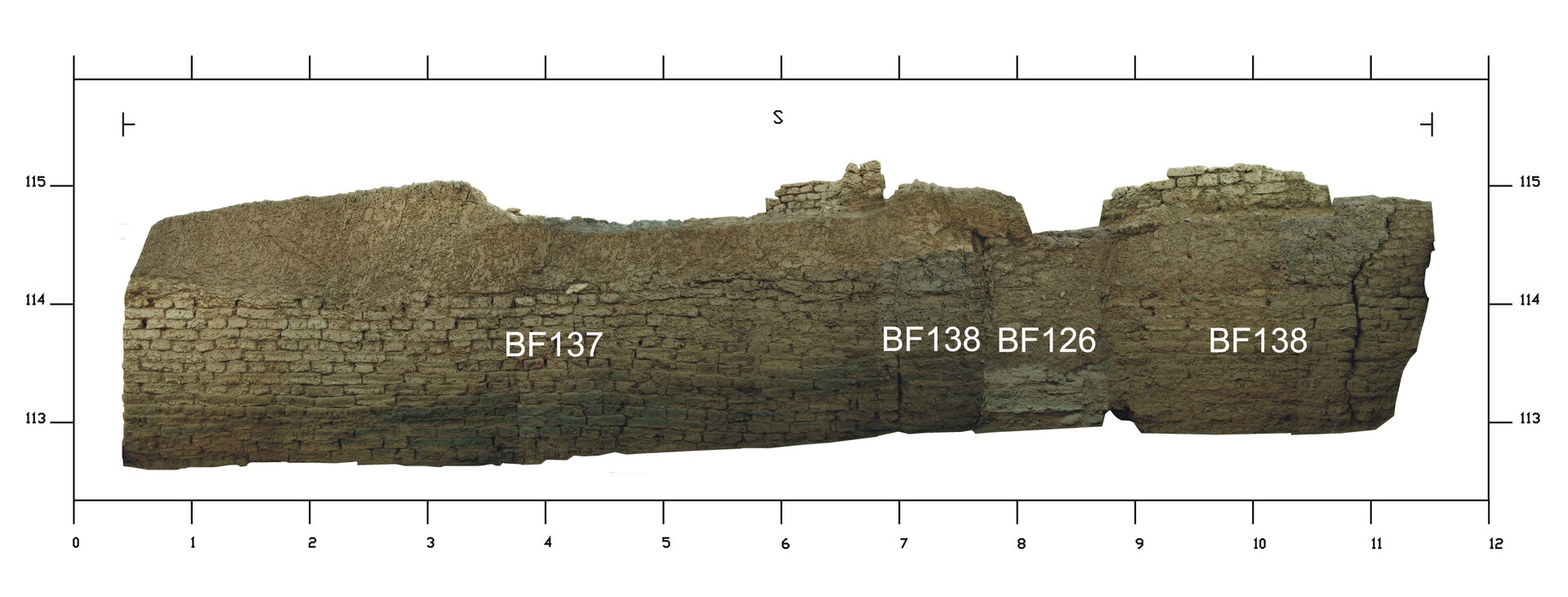 North side: BF124 (above wall BF42) and BF125 (above wall BF45). South side: BF123 (above wall BF137) and BF136 (above walls BF126 and BF138).↩︎