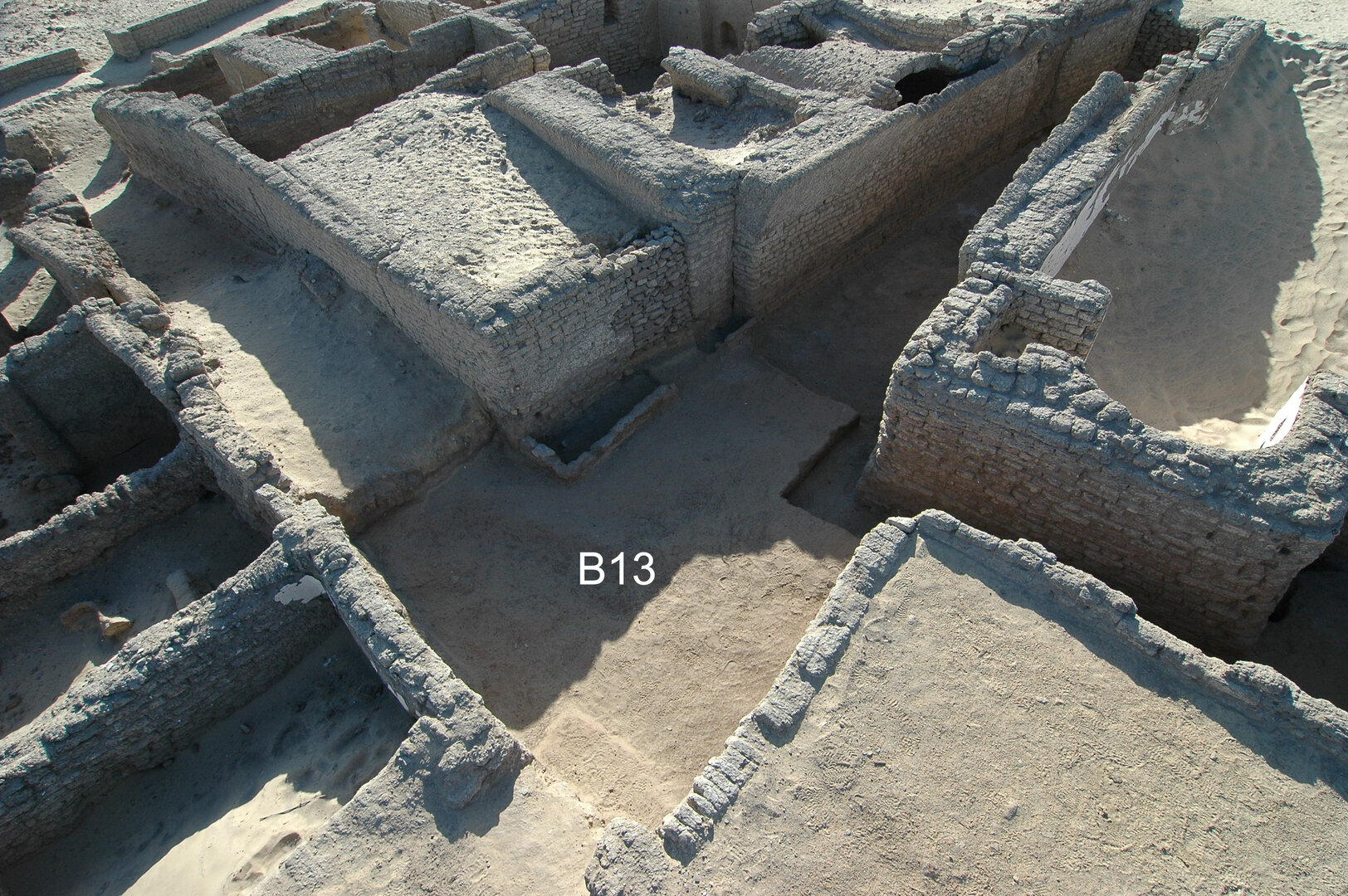 To the south, street B12 leads to space B13, which is a courtyard at the intersection of streets B11 and B12 (Plate 3.2; Plate 4.25, Plate 4.26). B13 is roughly rectangular and measures ca. 3.40 m north–south by 4.45 m east–west, with walls preserved to a maximum height of 2.10 m (southwest wall BF145).