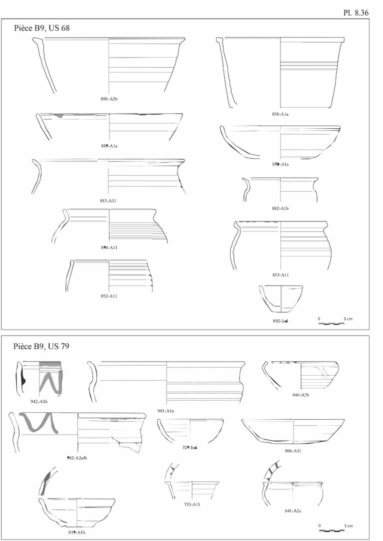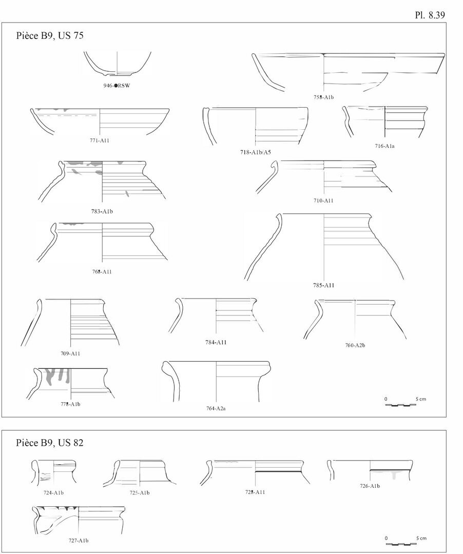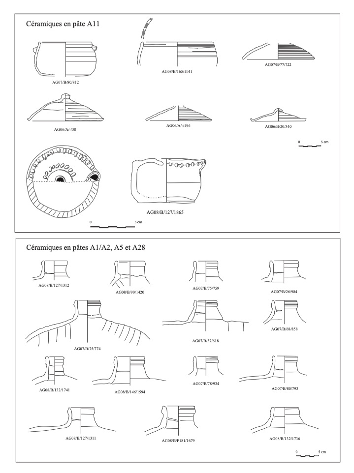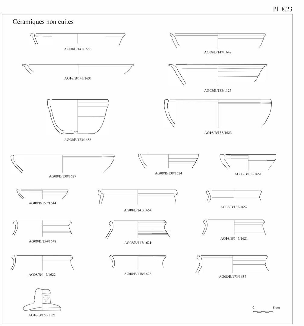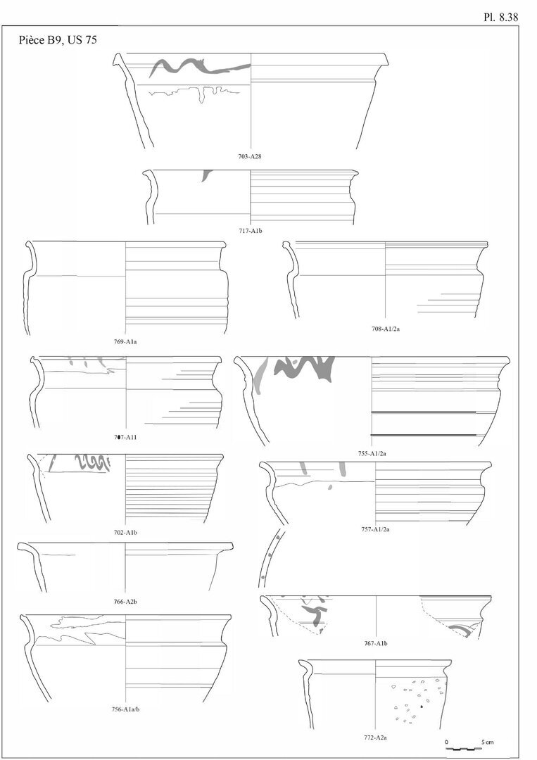 En ce qui concerne les bols en pâte A11, nous avons choisi d’indiquer 20 individus au lieu des 29 fonds. En effet, ces fonds peu caractéristiques peuvent également être associés aux pots globulaires, éventuellement aux casseroles.↩︎