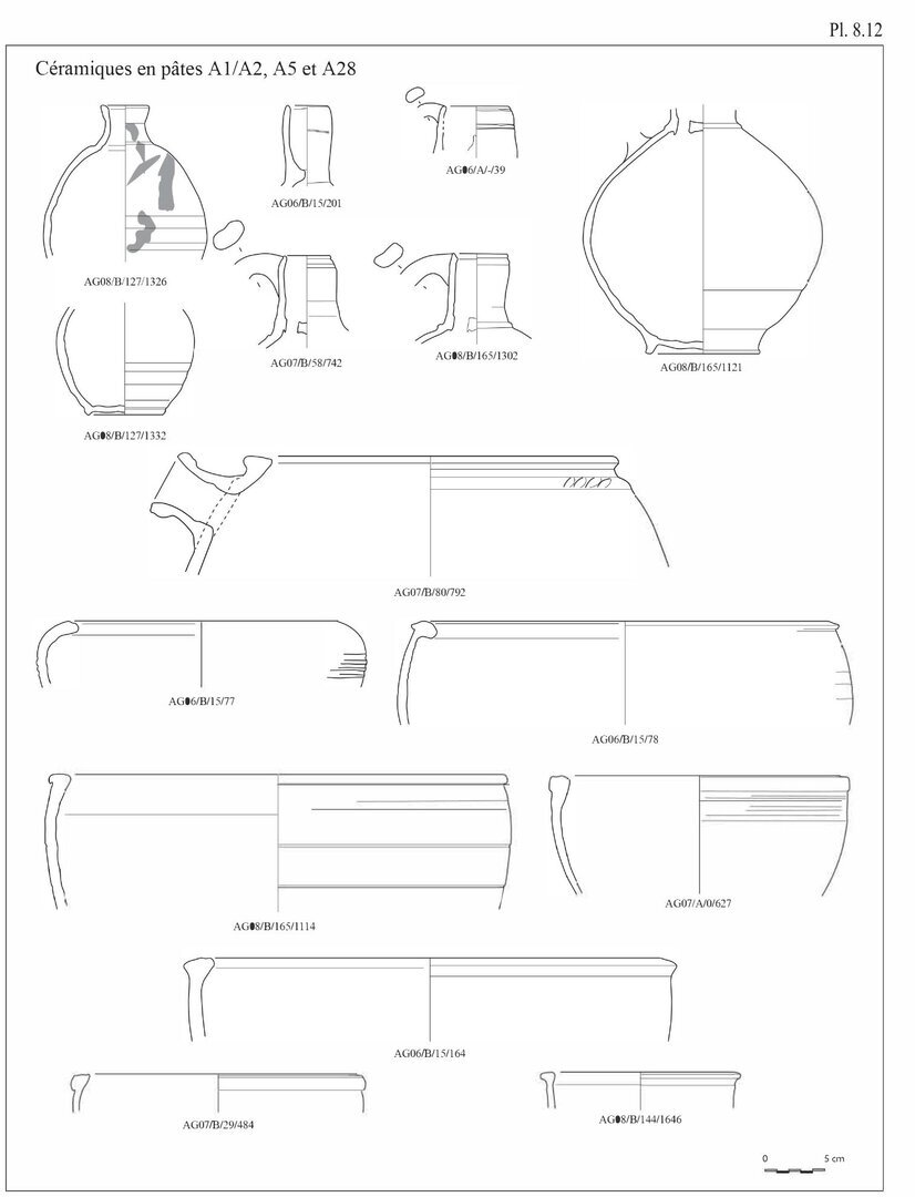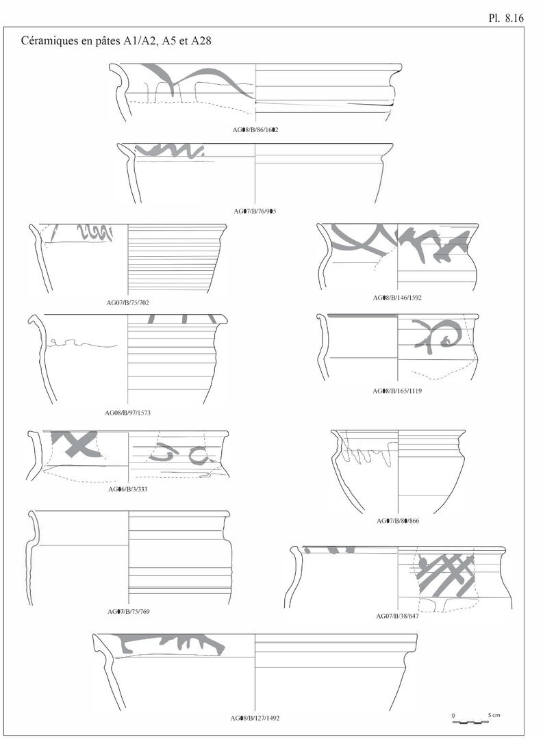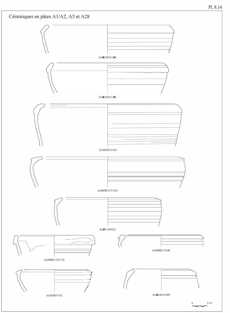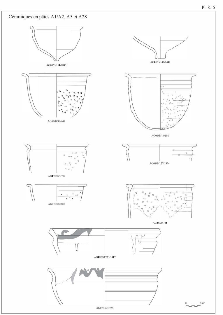 Une étude macroscopique des pâtes de tous les fragments de céramiques dessinés a également été réalisée; cette description s’appuie essentiellement sur des critères qualificatifs et quantificatifs: