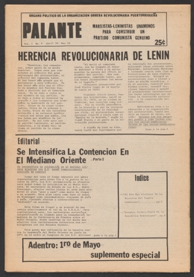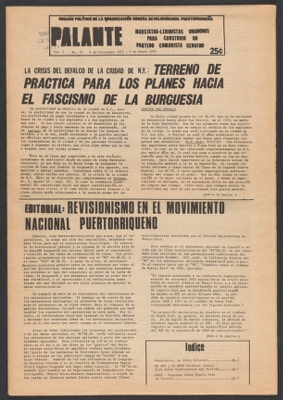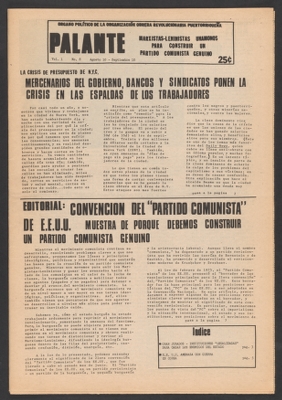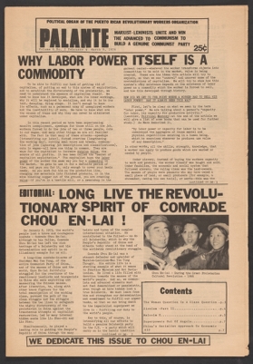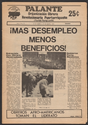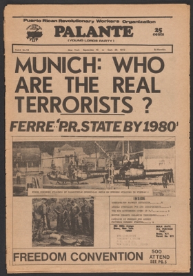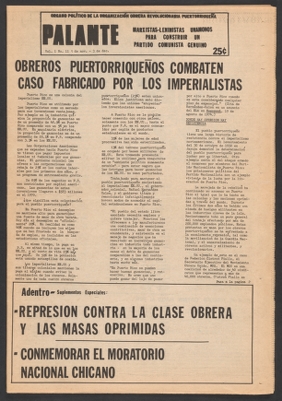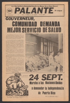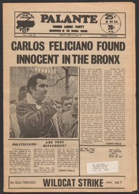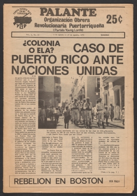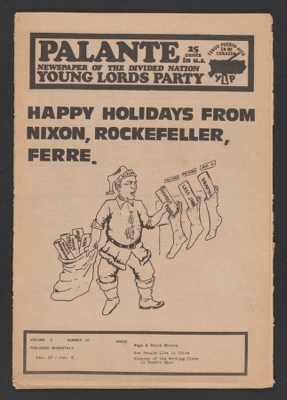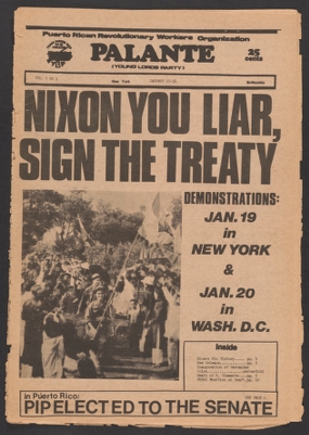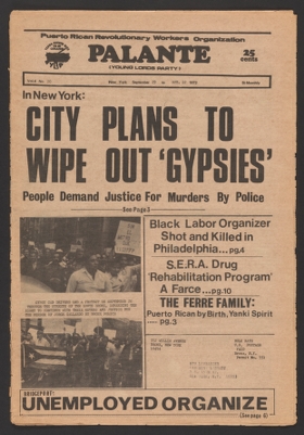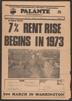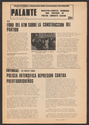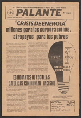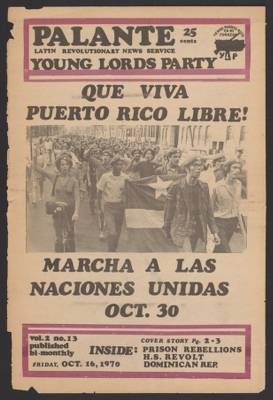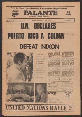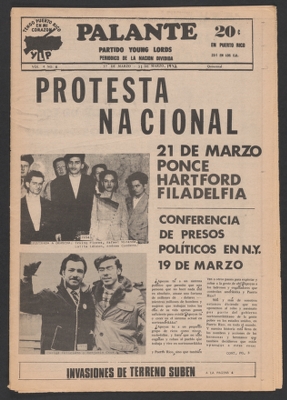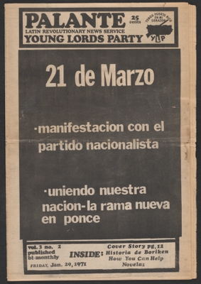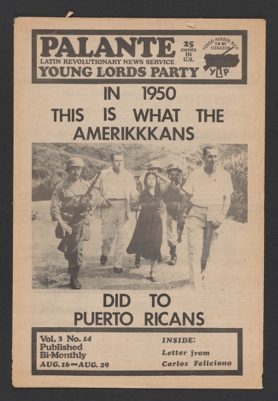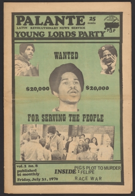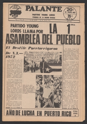 Palante (1970 - 1976) was a bilingual newspaper published by the Young Lords Party. The group was founded in July 1969 as the New York chapter of the Young Lords Organization and renamed itself in May 1970 after separating from the Chicago Young Lords. READ MORE…